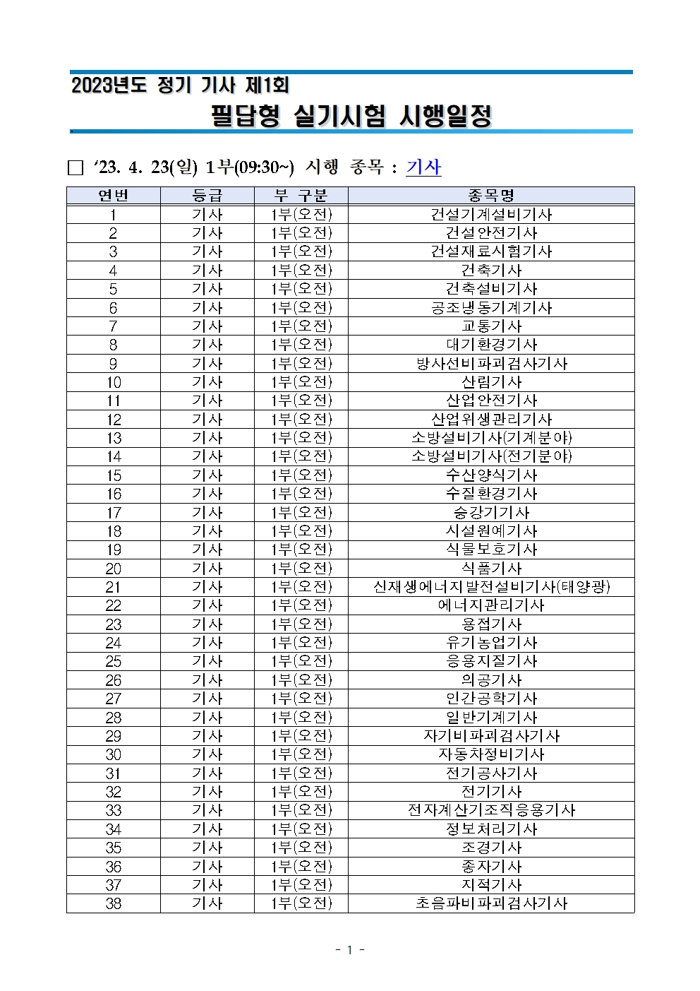 | 이전글 | [전기/공사기사] 2023년 제 1회 실기시험대비 자율모의고사 실시안내 |