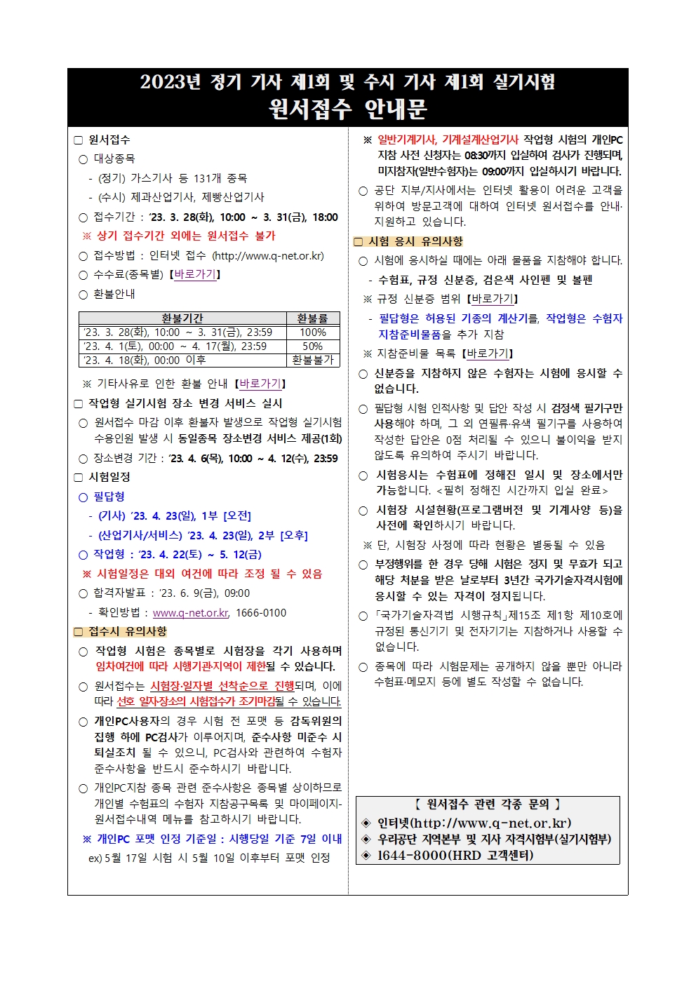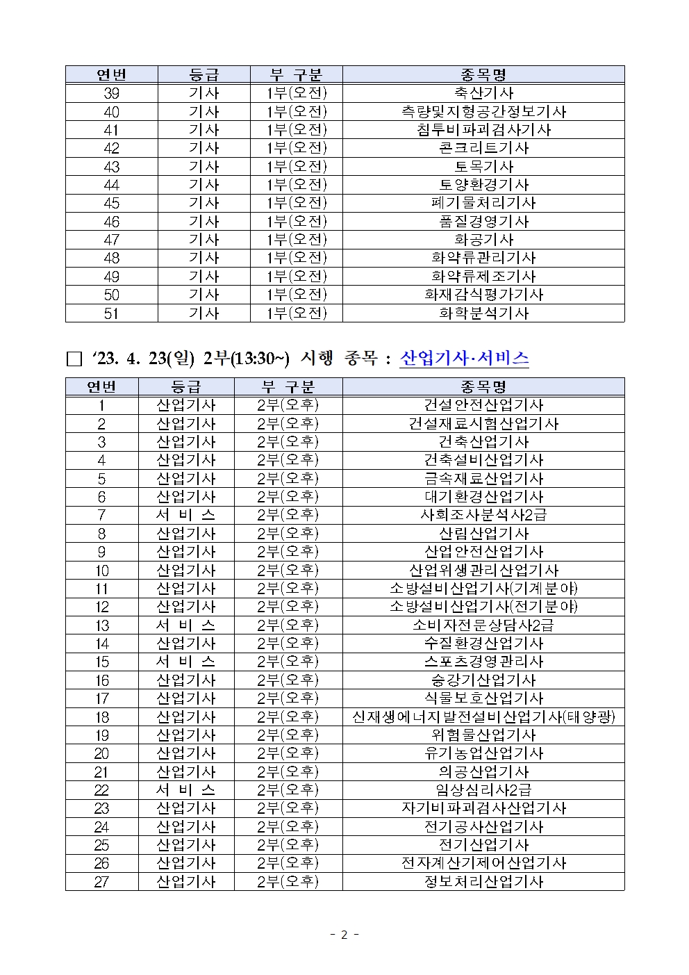 [원서접수 기간]03. 28(화), 10:00 ~ 03. 31(금), 18:00[시험일정](전기기사) 04. 23(일), 1부 [오전](전기산업기사) 04. 23(일), 2부 [오후](소방설비기사 기계·전기분야) 04. 23(일), 1부 [오전](소방설비산업기사 기계·전기분야) 04. 23(일), 2부 [오후]