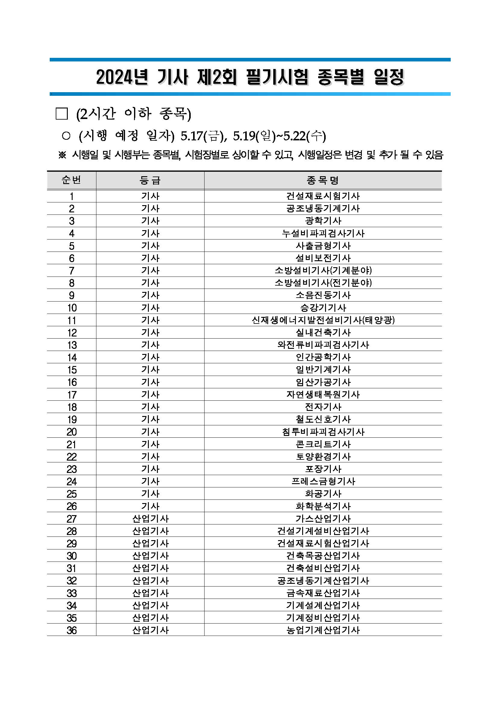 [3][붙임2] 2024년 기사 제2회 필기(CBT) 종목별 일정.pdf