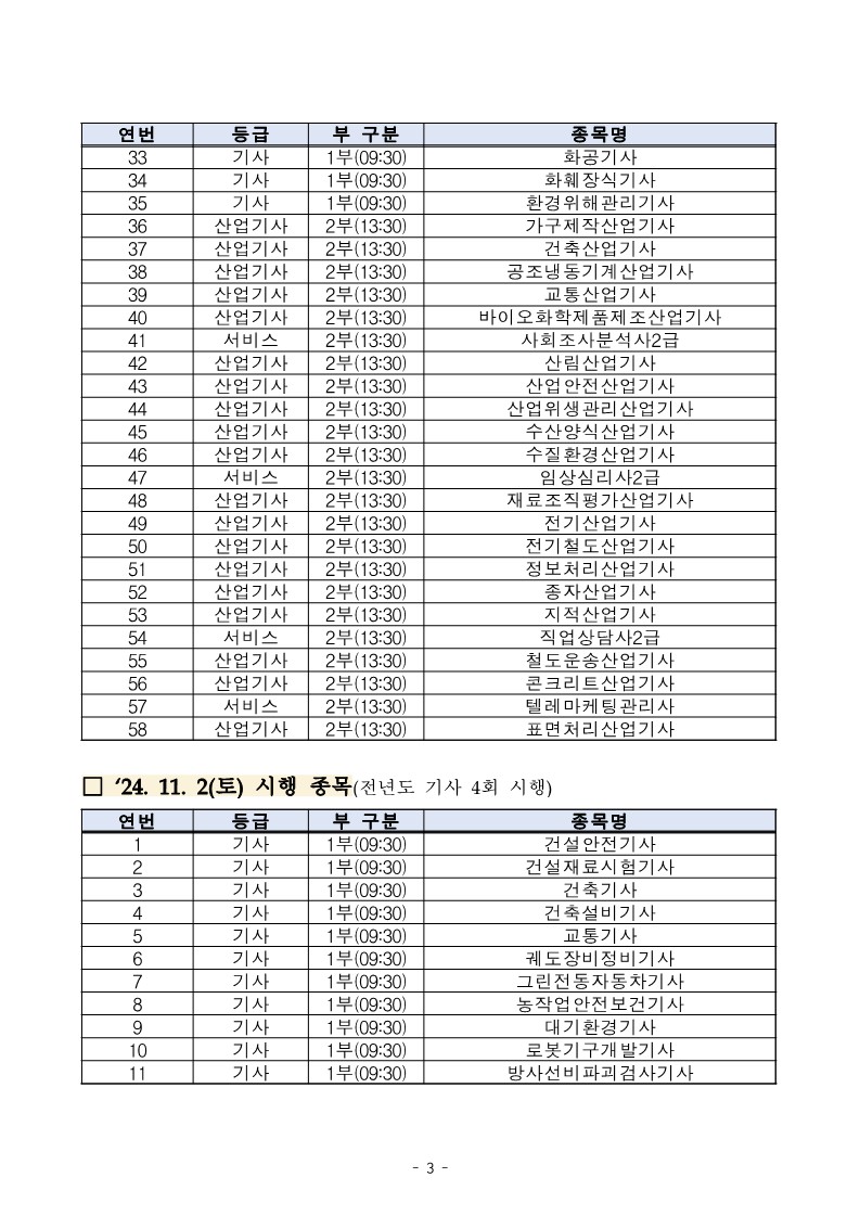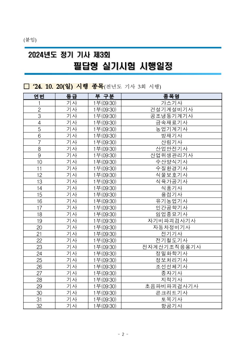 2024년도 기사 제3회 실기시험 원서접수 안내문, 필답형 시험일정 및 시험장, 작업형 시설장비 현황(예정)을 공지하오니 원서접수 시 참고하시기 바랍니다.