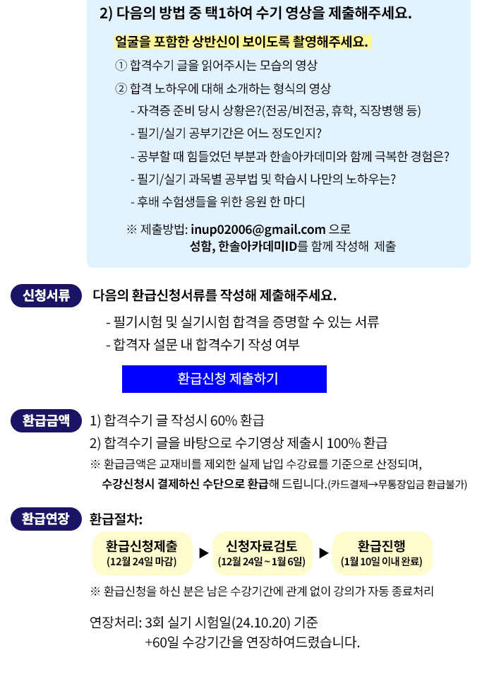 2024년 3회 시험대비 전기(산업)기사 환급+연장반 환급절차 안내