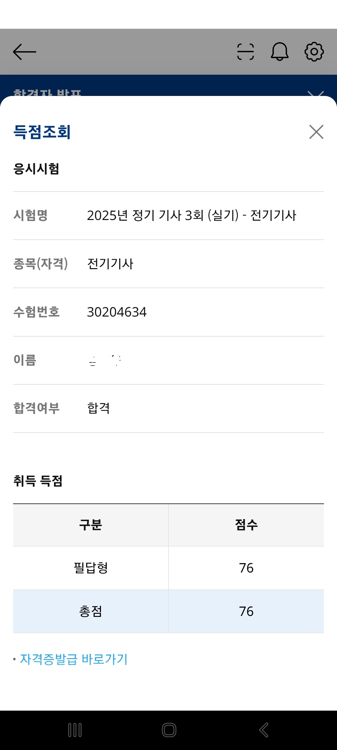 50대초 비전공 IT 계열 직장인이고 25년 3회차 전기기사 합격했습니다. 24년 3회차 건축기사 합격 후기이후 1년만에 합격 후기를 쓰네요. 회사 신사업 때문에 건축기사, 건축설비기사를 취득했지만 이왕 시작한 김에 난이도가 높다는 전기기사에 추가로 도전했고 필기는 25년 1회에 바로 합격했지만 실기는 3수만에 합격했습니다. 충격의 실기 1회차는 51점, 와신상담 후 치른 실기 2회차는 55점으로 불합격했고 마지막이라 생각하고 도전한 실기 3회차는 76점으로 합격했습니다.
