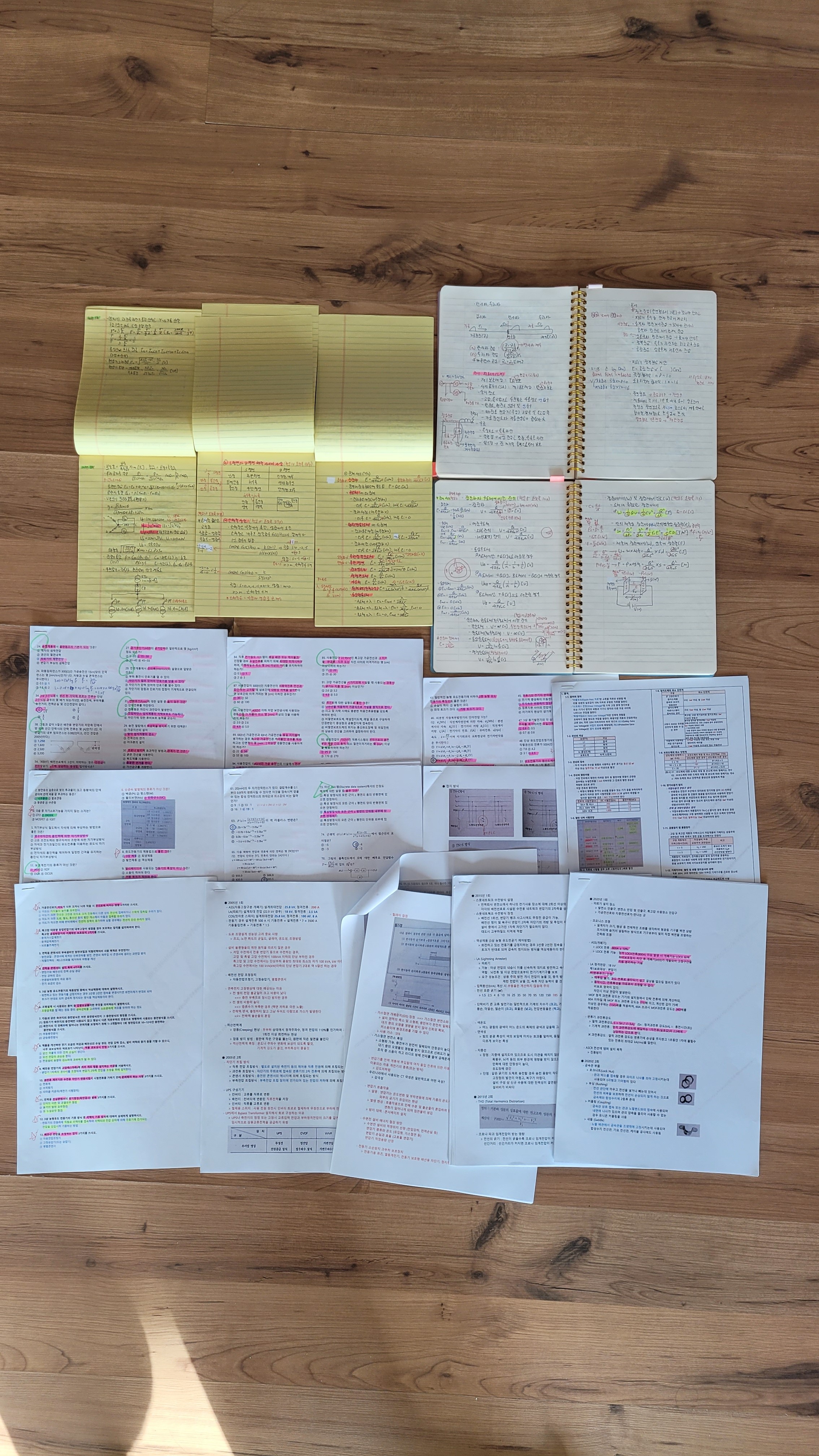 교재를 4~5번 정도는 보고 별도 노트에 중요하다고 생각하는 부분을 정리해서 사진을 찍어 출퇴근 시간이나 시간 날때 계속 봤고 주말에는 평균 6~7시간 정도 공부했습니다. 이렇게 2개월정도 하니 어느 정도 개념이 잡혔고 한솔 교재에서 제공한 포켓북과 블랙박스 필기 교재가 큰 도움이 되었습니다. 그래도 필기 시험 1주 전까지는 기출 문제를 몇번씩 풀어도 평균 60점대가 나와서 애를 태웠고 시험 직전에야 70점대로 점수대가 올라와서 필기 시험은 평균 80점대로 합격했습니니다. 필기 준비 기간은 4개월정도 걸렸네요.