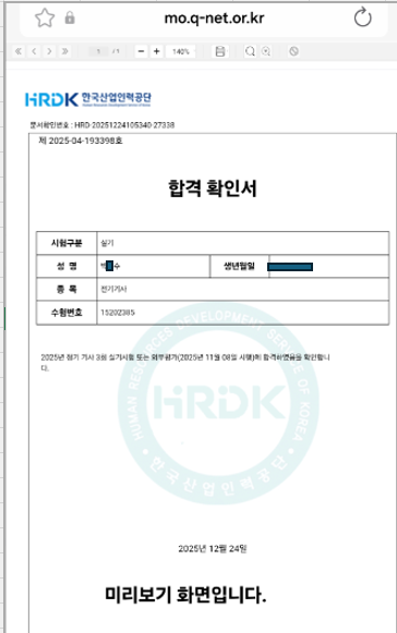 · [2025년 1회 전기산업기사] 비전공자 합격 후기