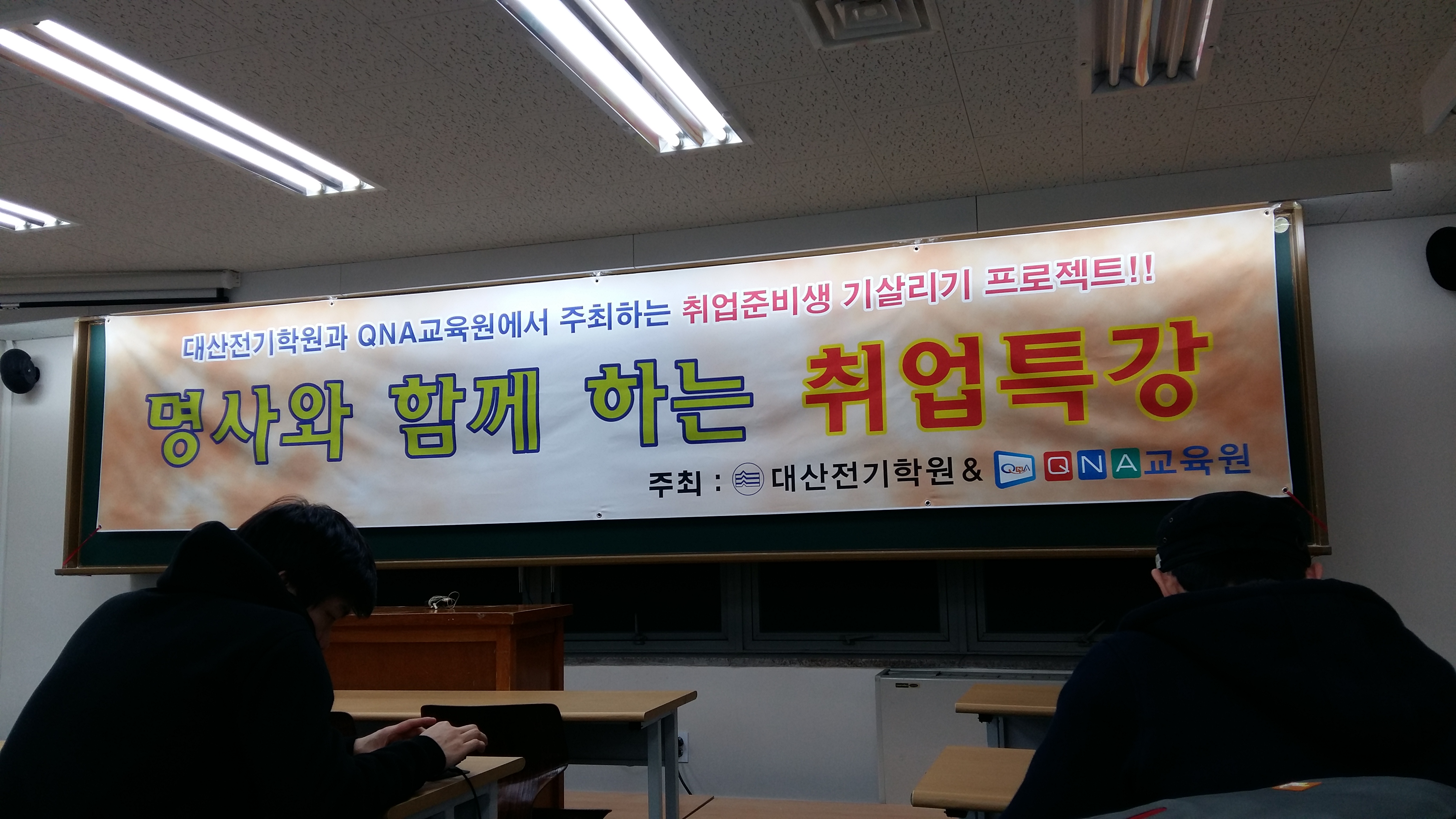 ![]() 15년 1월 29일 18시에 대산전기학원에서 주최한 "명사와 함께 하는 취업특강" 에 친구들과 듣게 되었다.