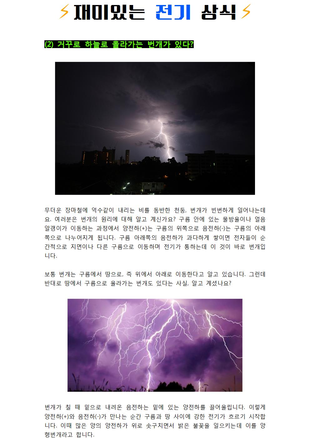 재미있는 전기 상식 : (2) 거꾸로 하늘로 올라가는 번개가 있다
