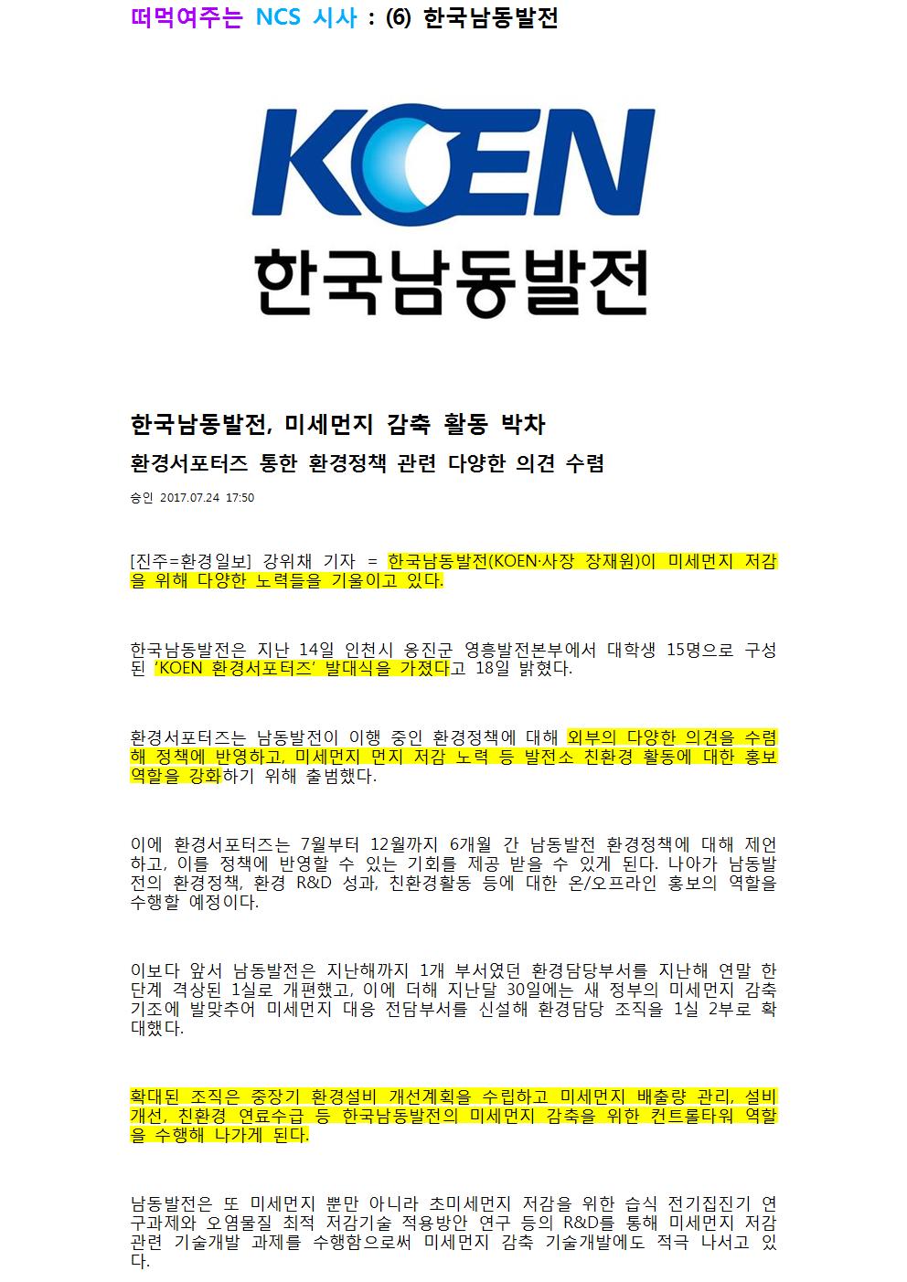 떠먹여주는 NCS 시사 : (6) 한국남동발전 #1