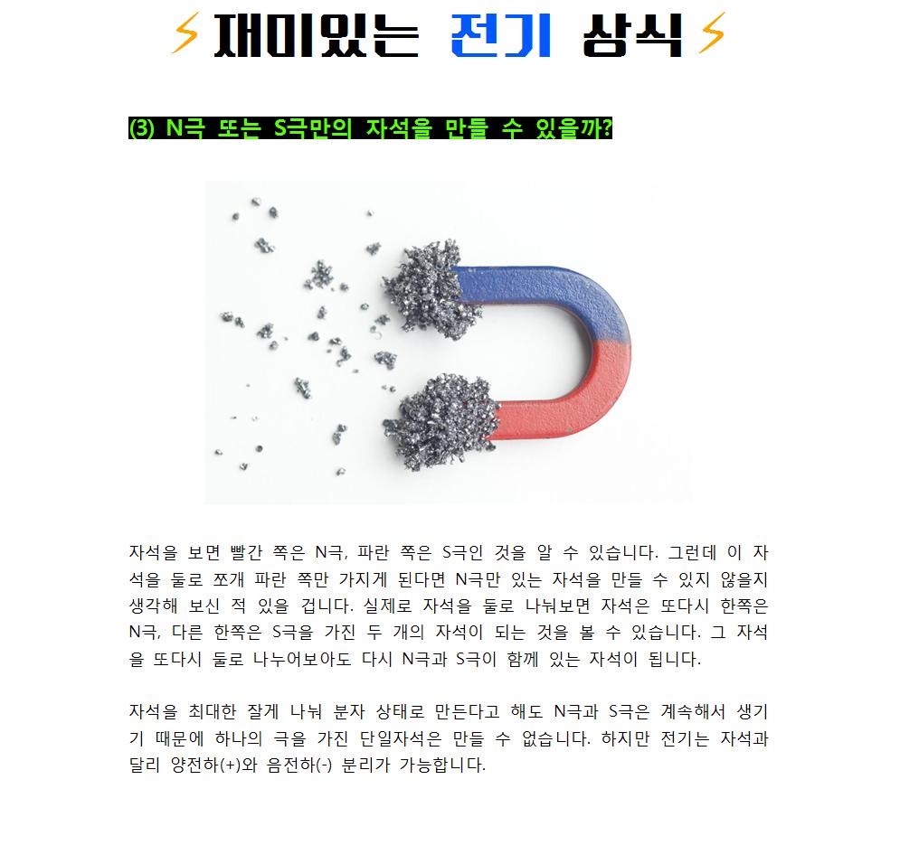 재미있는 전기 상식 : (3) N극 또는 S극만의 자석을 만들 수 있을까