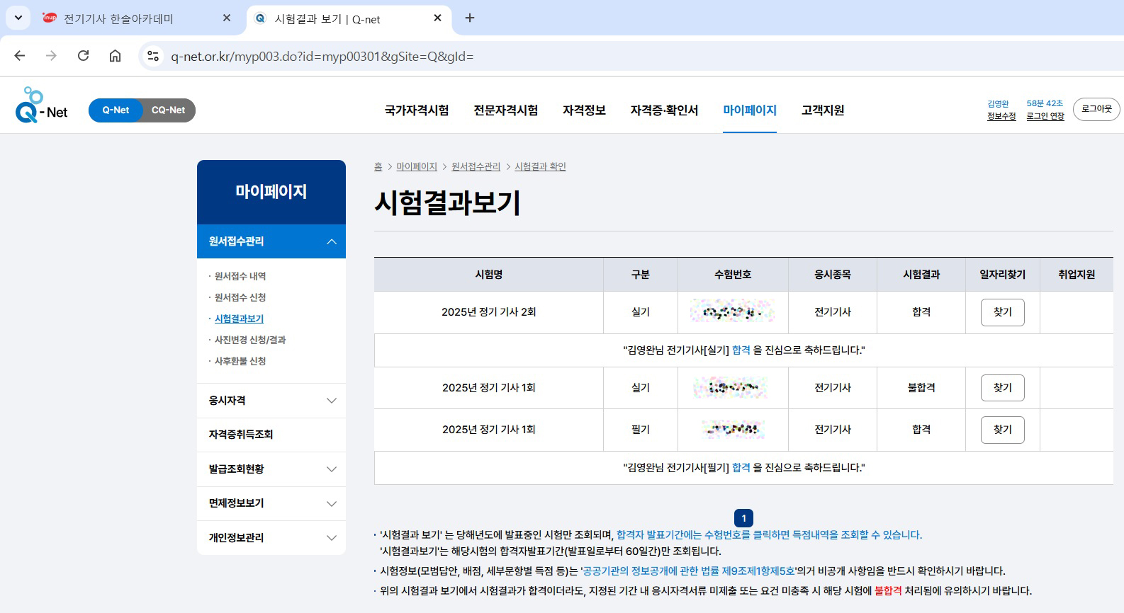 60대 후반의 나이로 2025년 제2회 전기기사 실기시험 합격. 제 수험번호를 몇 번이고 다시 확인하고 나서야 그동안 고생했던 일들이 머릿속에서 주마등처럼 지나갔습니다.