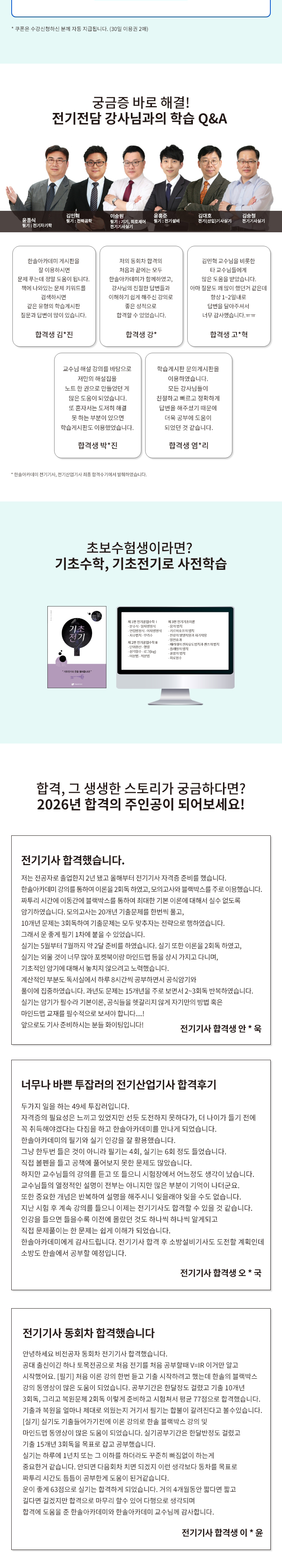최초 수강기간 1년내 전기기사 또는 전기산업기사 시험에 불합격하신 경우 불합격 증빙자료를 제출해주시면 수강기간을 +1년 무료로 연장해드립니다.