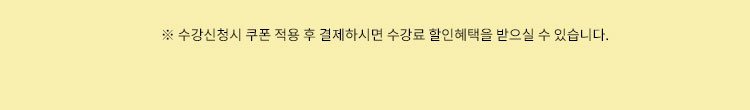 - 무료연장, 표준학습기간 종료 후의 무료복습기간 또는 사용자의 응시시험 불합격에 의한 수업연장 기간은 학습비 징수기간에 포함되지 않습니다.