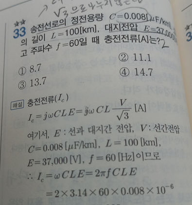 2-29page에 충전전류 공식을 보면 j 가 없는데 문제 33, 35번 문제에 j가 왜 공식으로 들어가