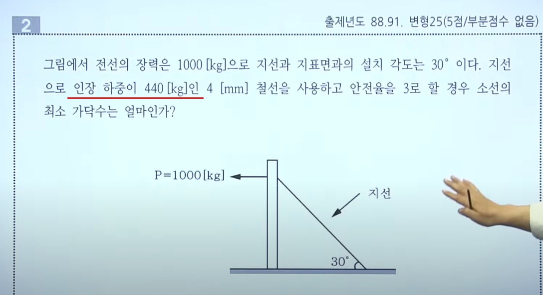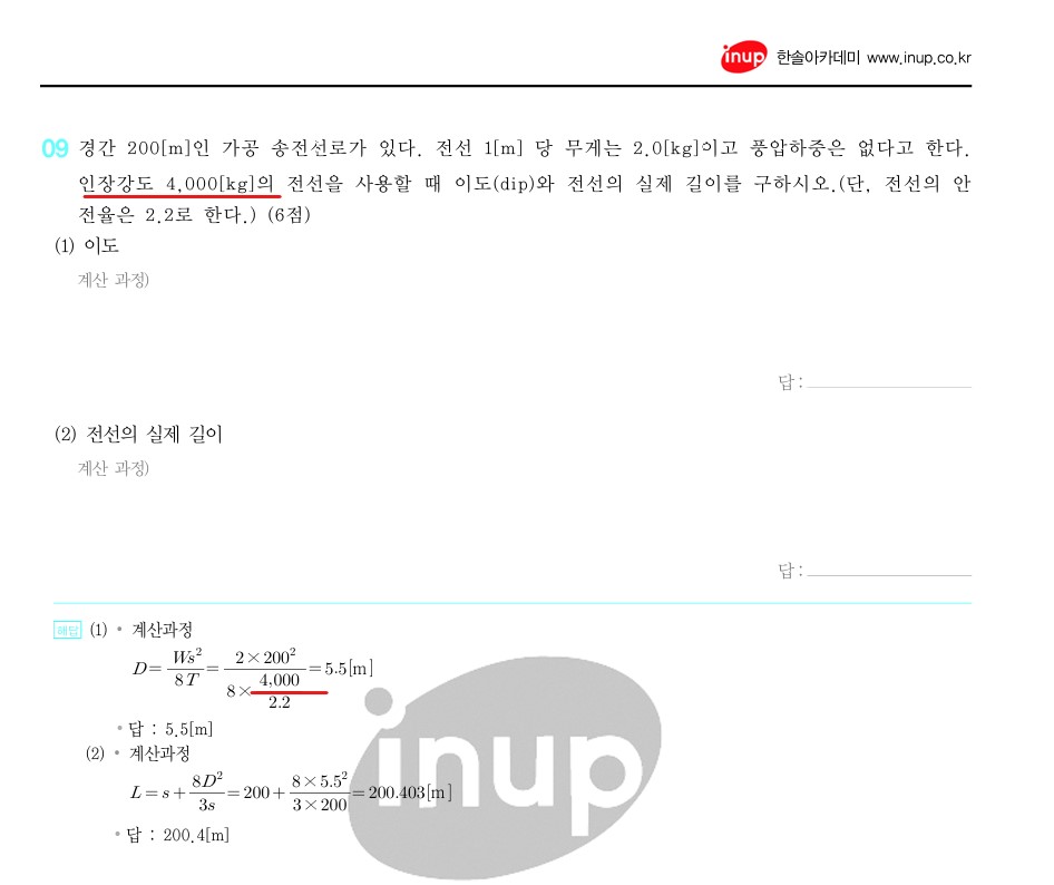 09번 문제에서 인장강도 4000 [kg]라고 적혀 있는데, 계산은 인장하중으로 계산됩니다.