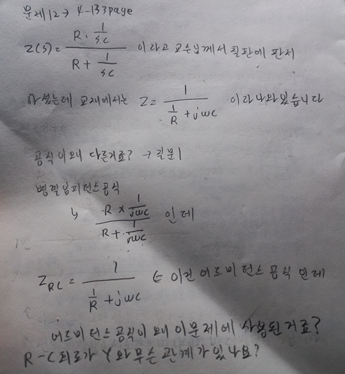 물론 곧바로 곱/합 으로 풀이하는 경우도 있지만 보통 해석하는 방법은 어드미턴스를 구한 다음 역수를 취하는 풀이를 일반적으로 사용합니다~