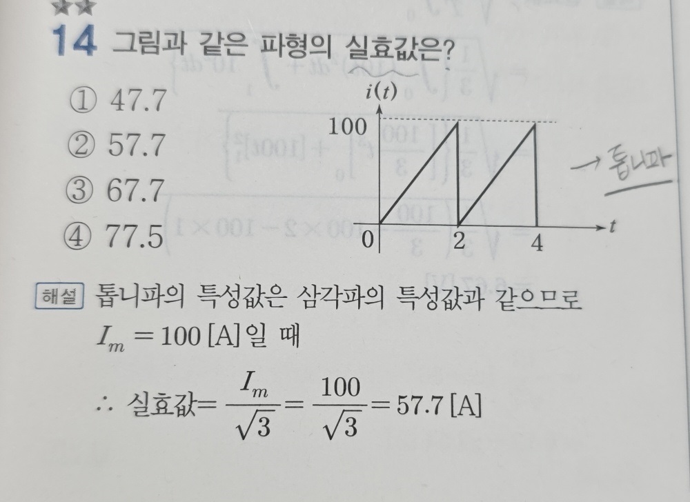 해당 문제의 톱니파가 반파가 아닌이유는 파형이 연속적이어서라고 이해를 해도 괜찮을까요?