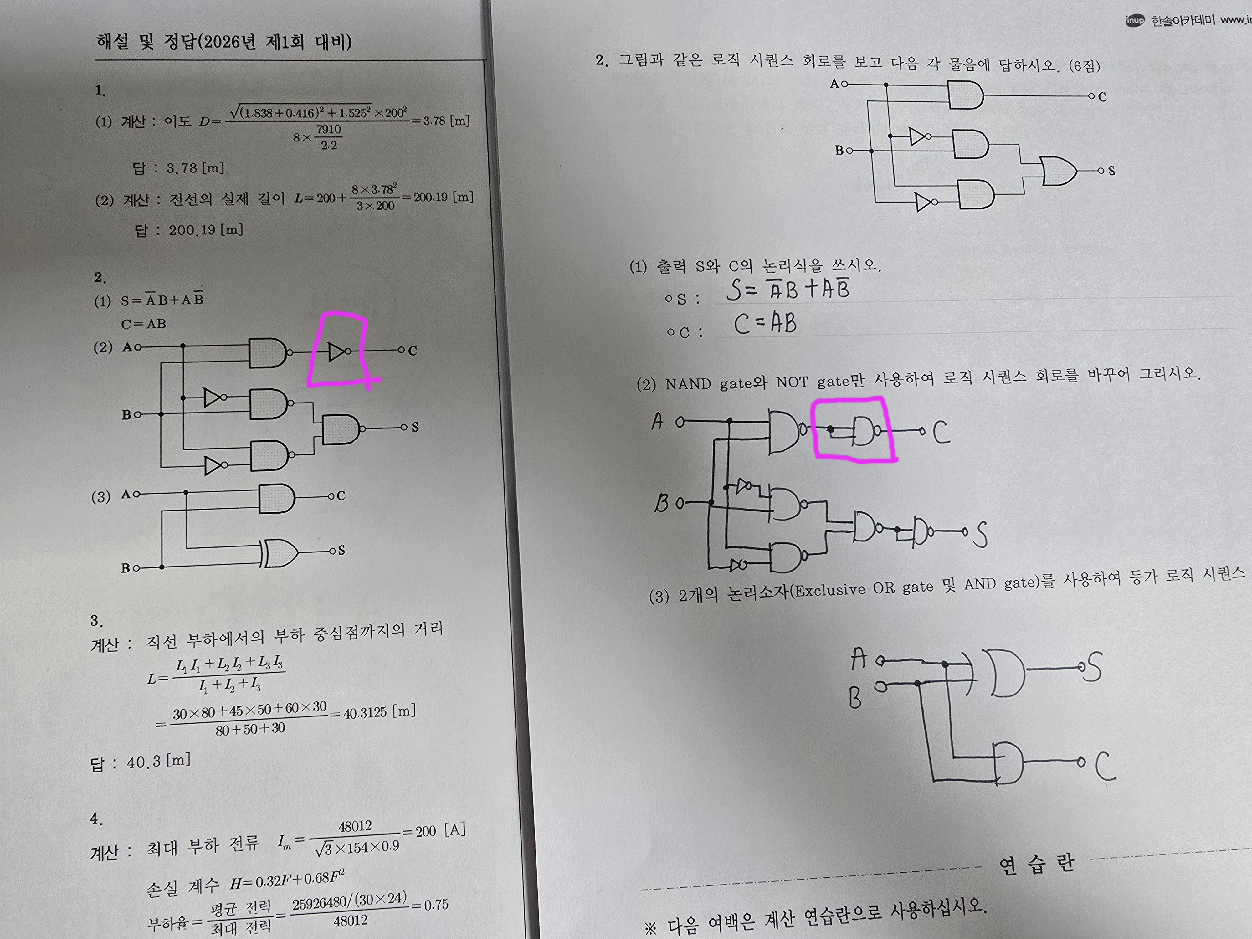 홈페이지에 올려주신 2026년 제1회 대비 모의고사를 풀어보다가 예전에 책에서 NAND gate 만을 이용한 회로 그리기 문제 푸는게 습관이되어 제가 박스로 표시한 것 처럼 풀었는데 모의고사 해설에 있는 것처럼 NOT gate를 사용하여 출력 C에 연결시켜야 맞는 로직 시퀀스 회로가 되는걸까요 교수님? 질문드립니다!