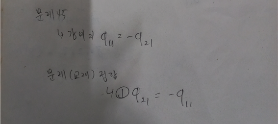 보기에는 q21=-q11가 정답이라고 되어 있는데 보기 정답이 오답아닌가요??