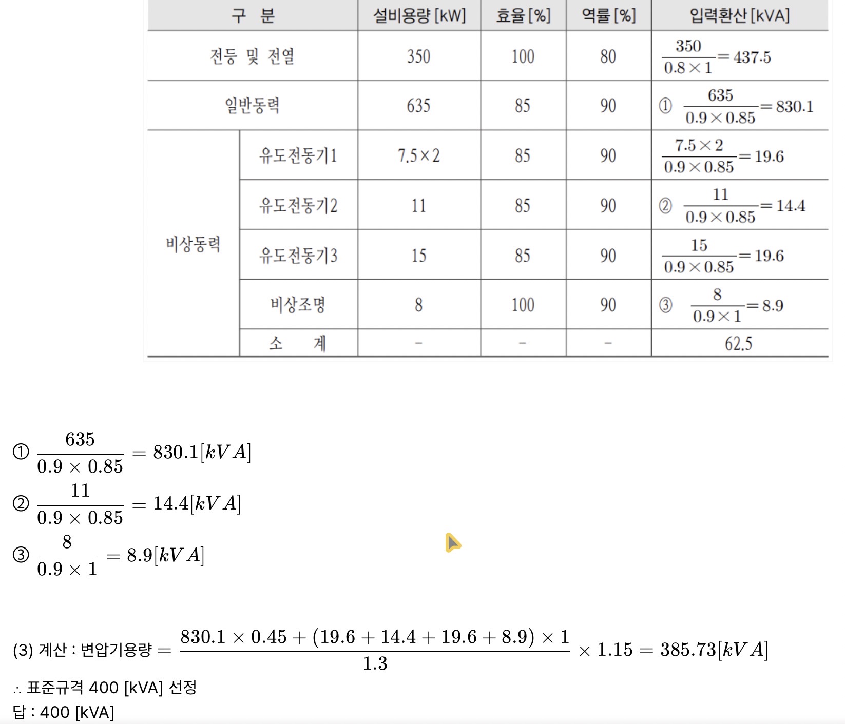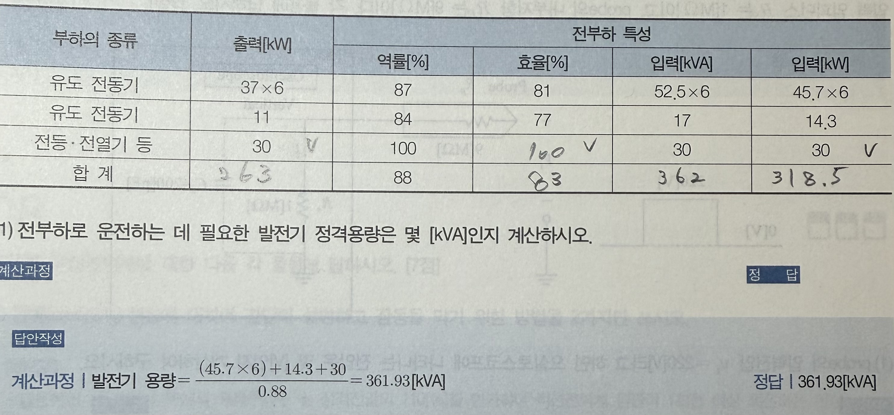 실기 시험에서 각 부하의 피상전력을 단순 합산하여 답을 구하면, 설령 최종 선정 용량이 우연히 같더라도 계산 과정이 명백히 틀렸기 때문에 오답으로 처리됩니다.