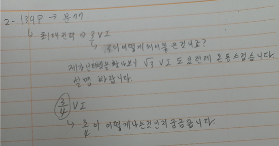 질문] 상전압을 선간전압으로 표현 하면 루트3x전압 x전류가 되는 것입니다.