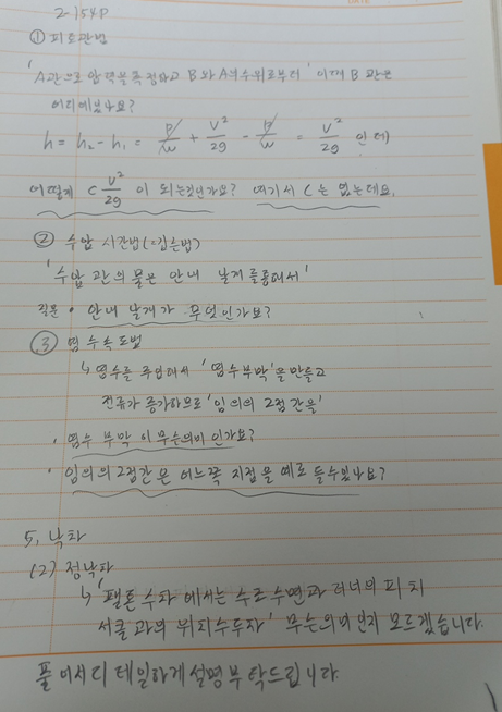 질문]수압시간법:관배부의 압력 변화를 시간에 따라 측정하고 유량을 계산하는 유량 측정방법 입니다