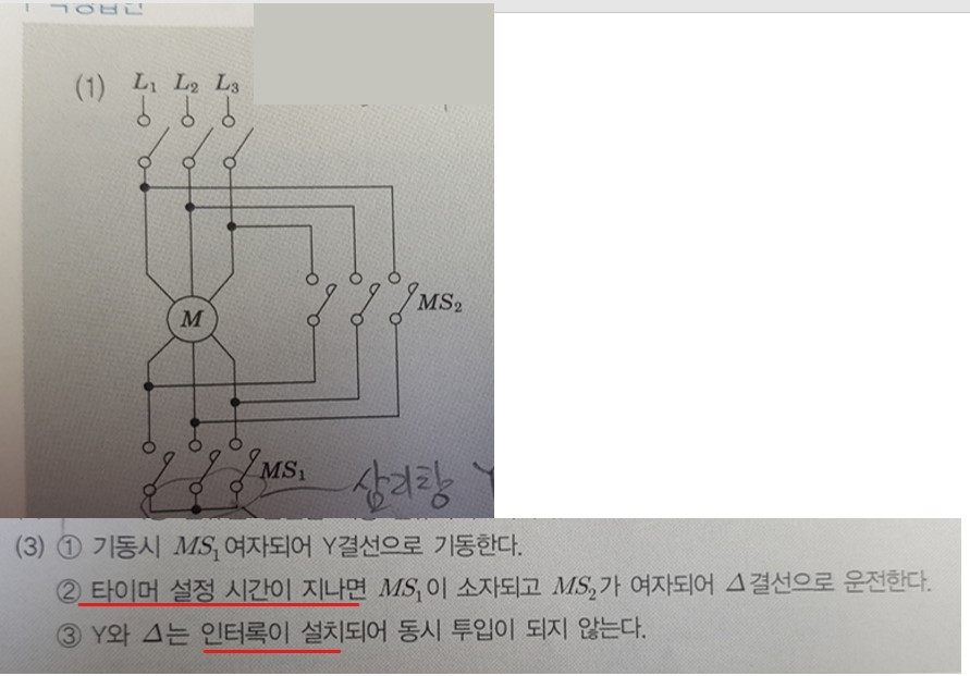 채점 핵심: Y-Δ 기동의 핵심은 '기동(Y)'에서 '운전(Δ)'으로 자동 전환되는 것입니다.