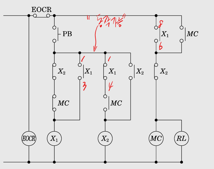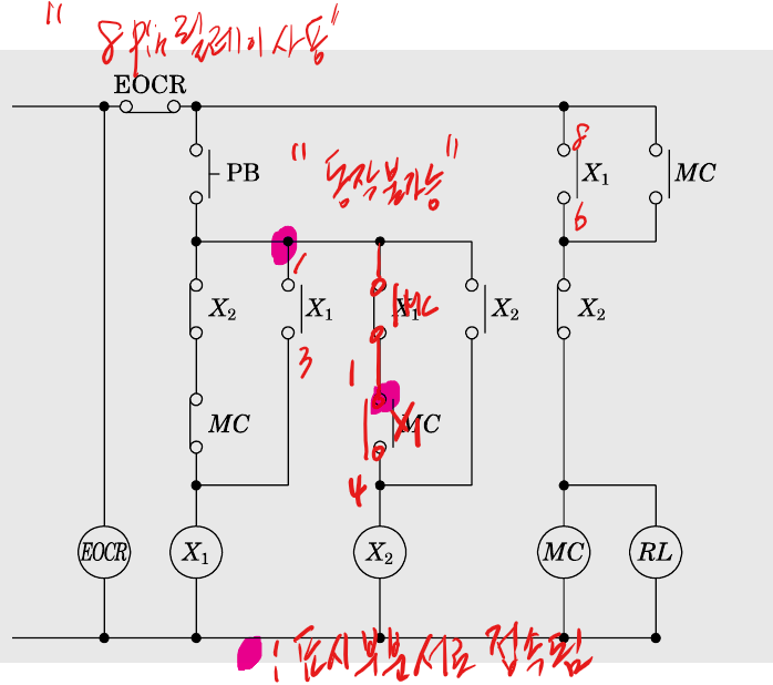8번 세트: 8번(공통), 5번(b접점), 6번(a접점)