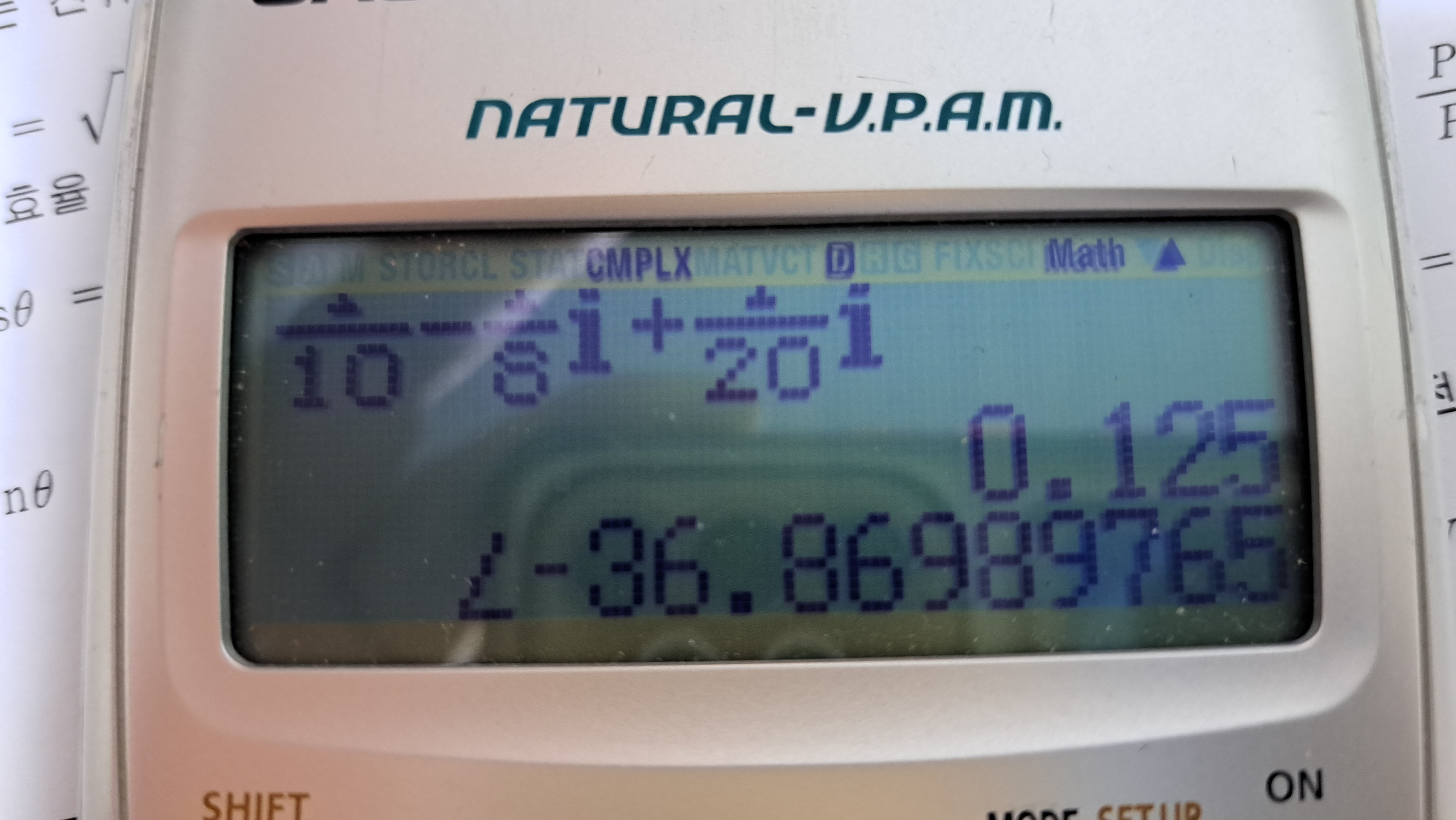 임피던스를 구하는 풀이에서 실수부 - 허수부 + 허수부가 나옵니다.