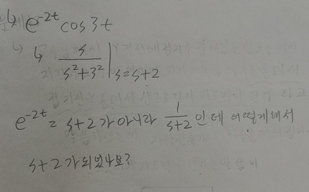 복소추이정리를 이용할 때 지수함수를 전체 라플라스 변환하는 것이 아니라 지수함수 라플라스 결과의 분모항만 이용하여 결과를 완성시킵니다~