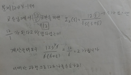 12s/(s+6) 식에 s=무한대를 대입하면 무한대/무한대 꼴로 나오는 초월함수이기 때문에 이 경우에는 분모와 분자를 모두 s로 나누어줘야 합니다.. 수럼 수식은
