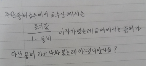 등비나 공비는 일정한 비란 의미로 표현됩니다~
