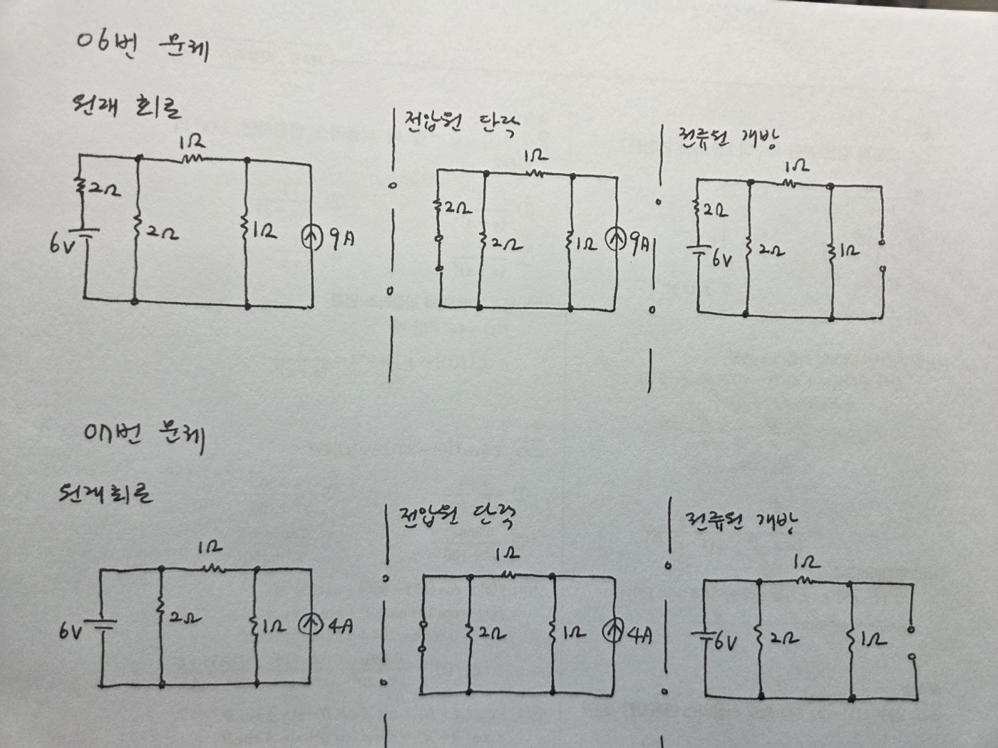 (전압원 단락, 전류원 개방 했을 때 전류의 흐름을 나타내는 그림을 볼 수 있을까요?)